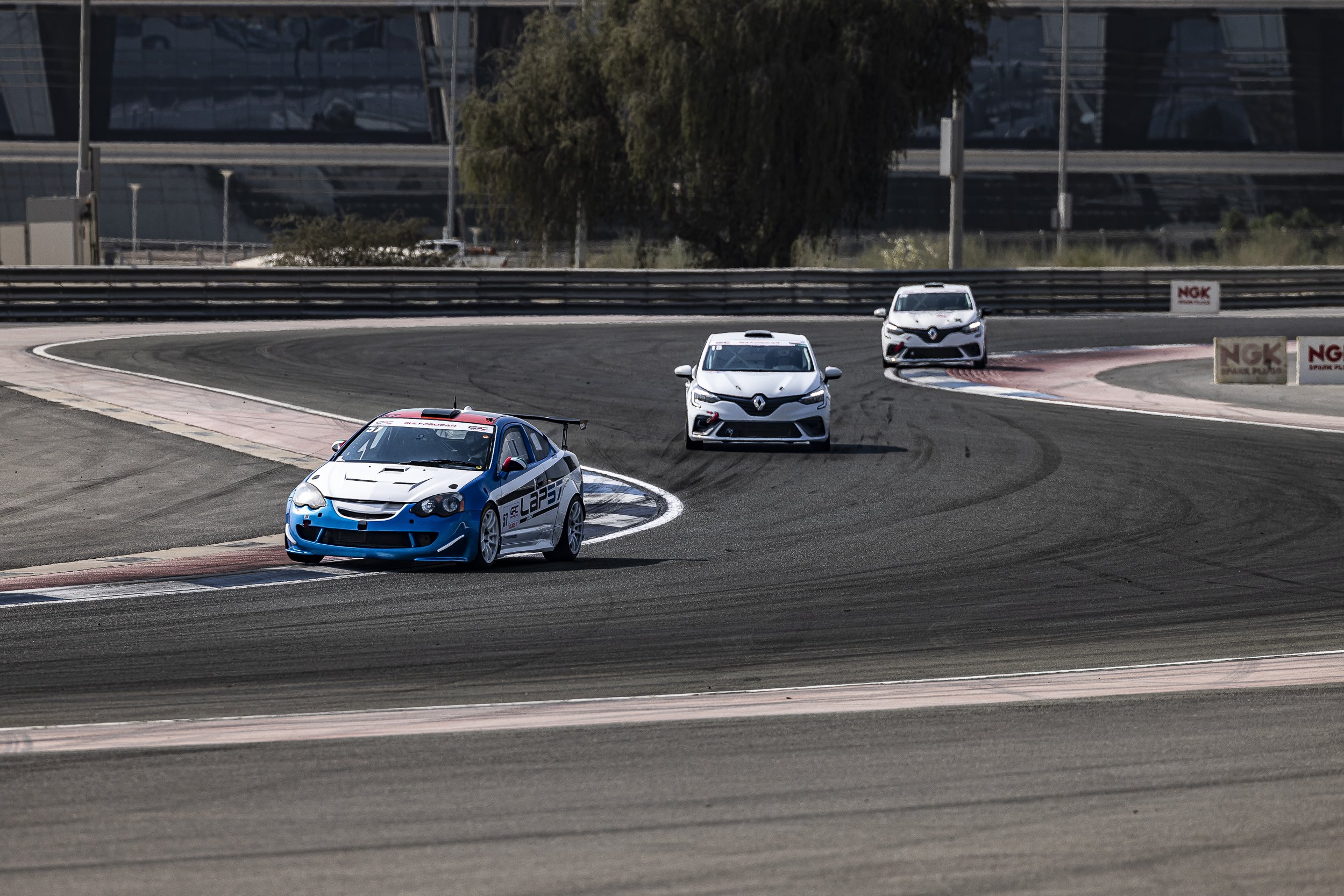 Race 2 allowed Ivan to redeem himself from the troubled Race 1 start, whilst he looked to duplicate the result from earlier in the day. Ivan led the field away and through turn one, with Youssef, Ruslan and Konstantin hot on the heels of Ivan. Avik and Roman fell back from the leading pack as they attempted to navigate the Class 4 Honda of Karim Zuhour. Youssef and Ruslan engaged in an unbelievable battle for second place, whilst Konstantin faced technical issues on lap 3 which ground his Clio to a halt on at Turn 13 and forced an early retirement. Unfortunately for Ruslan, a mistake in the final stages of the race cost him to lose third place to Roman Tishenkov and agonisingly denying him of a podium on his Gulf ProCar debut. At the chequered flag it was Ivan Tverdokhlebov that completed the clean sweep, followed by Youssef Gaber in second, Roman Tishenkov in third, Avik Anwar in fourth and Ruslan Safin in fifth.